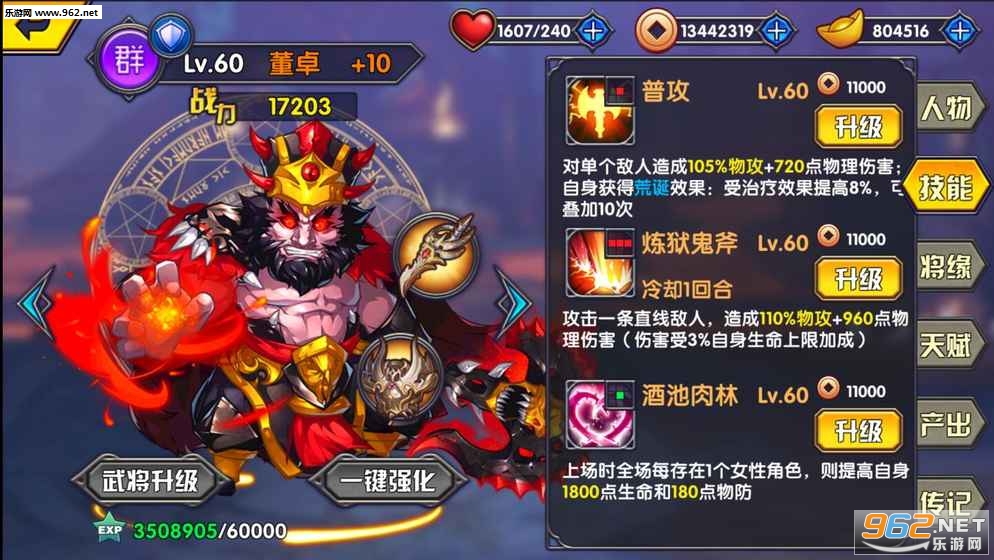 游戏中每个武将都有自己的独有的天赋系统,你可尽情发挥,用多种天赋加点方式让你的武将拥有不同的能力,打造属于你自己独一无二的武将。