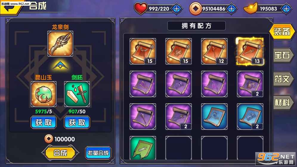 游戏除了很独特的天赋系统外,在合成装备上也非常特别,一般在铁匠铺中可以合成装备的种类非常有限,所以我们使用了以不定向随机属性装备合成系统,虽然看起来是一样的装备,其实它都有自己不一样的内在。同等级的同一装备配方在铁匠铺合成后,它的属性的是却是多样式的,可以说是能迎合所有武将的装备需求,也能让武将的属性千变万化。