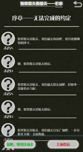 《如果明天是晴天》是一款非常好玩的文字冒险游戏,游戏中有强大而精彩的剧情,曲折的人物经历和纠缠的人物关系不断牵动人心,不同的回答会导致不同的结局,快来看看王子和他的女孩儿们会发生什么样的故事吧。
