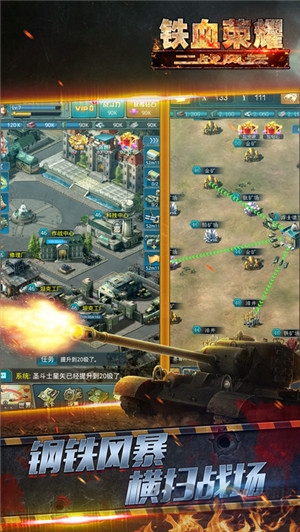 不再是呆板的推图,不同的建筑发展线路,坦克兵种和坦克配件的合理搭配,多变的派兵布阵…………这是凸显你智慧能力的挑战,让我们看到建筑发挥的最大价值和战场的爆发力。钢铁风暴必将超越一切,你还在等什么?!