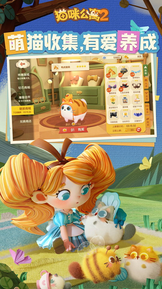 你可以收集萌态各异的猫咪,繁育可爱小猫。近百种玩具有爱互动,数千件萌装尽情混搭,陪伴猫咪们慢慢长大,一起度过温馨治愈的时光。