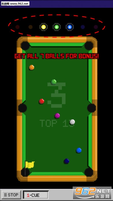 只是放一个白球,尝试将七种颜色的球击入洞中。