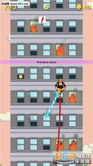 玩家需要操纵消防员大叔手持喷水枪,从下而上解救摩天大楼上的各个住户,控制出喷水枪的出水力度,当他碰到大楼的左右之时便会自动转向,不过千万不能接触到有火焰的窗台。