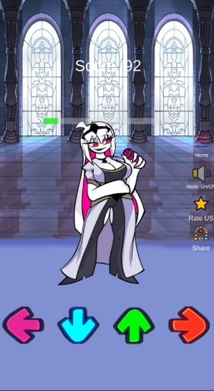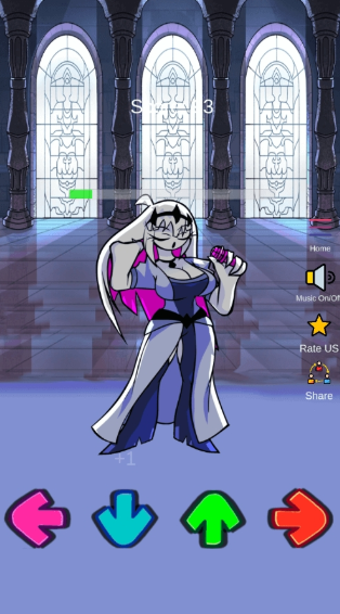 2、开始游戏时,单击设备屏幕上的箭头。只要你点击箭头,角色就会唱出一个音符并做出某些动作,你就会得到分数。