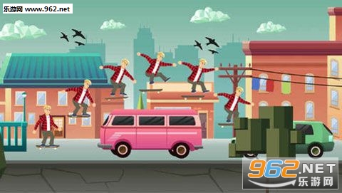 游戏玩法非常简单,点击屏幕即可操纵滑板跳跃,尽量在路中完成一些花样,会有分数加成。