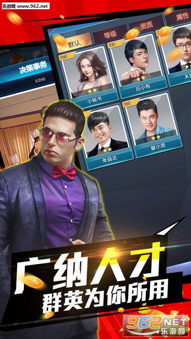 玩家在游戏中可招聘员工也能对其他玩家挖墙脚,根据每个员工的兴趣爱好与特长,安排合理的岗位,发挥员工最大效益,实现公司收益最大化,体会公司飞速壮大的成就感。