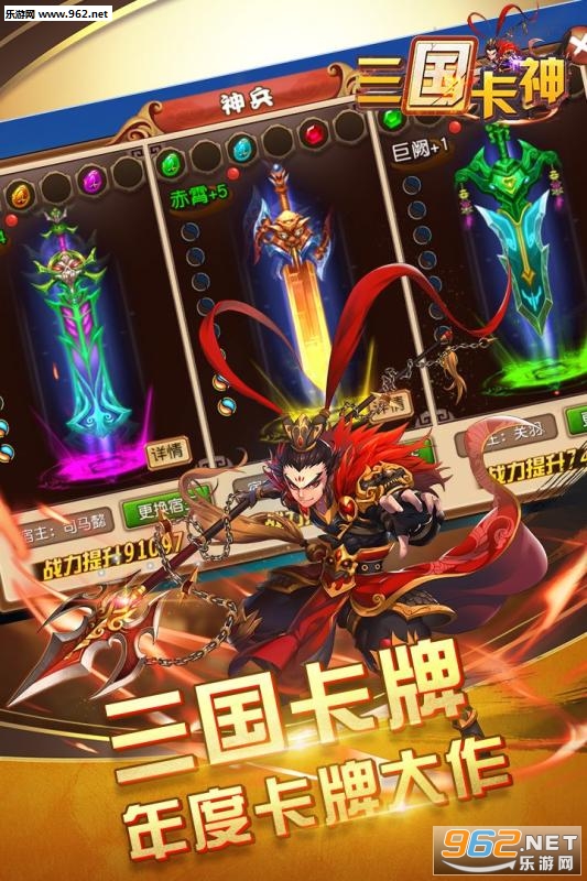 2026年全新次世代手游《三国卡神》历经三年制作重磅开启!这是一款拥有首创的即时武技玩法的三国卡牌产品。游戏将卡牌与动作完美结合,操作简单上手极快。重剑无锋,大巧不工,为您呈现三国经典画风前所未有的全新体验!《三国卡神》打破传统的三国各自阵营系统,名将将自由上阵战斗!更有千人实时在线对战的热血帮会战!募名将,战魔龙,休闲娱乐,还有帮会副本等系统等你来玩,高品质匠心之作,经典题材,全新展示,给你不一样的指尖体验!