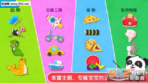 宝宝认知大全是一款专门为婴幼儿童打造的全新休闲益智类小游戏,在游戏中,熊猫兄妹将和宝宝一起认识生活的食物、动物、交通工具、家用电器等众多生活中经常接触的物品,让宝宝一步步慢慢了解这个美丽的世界,怎么样,喜欢嘛?喜欢的话不妨进入游戏尝试一下吧!