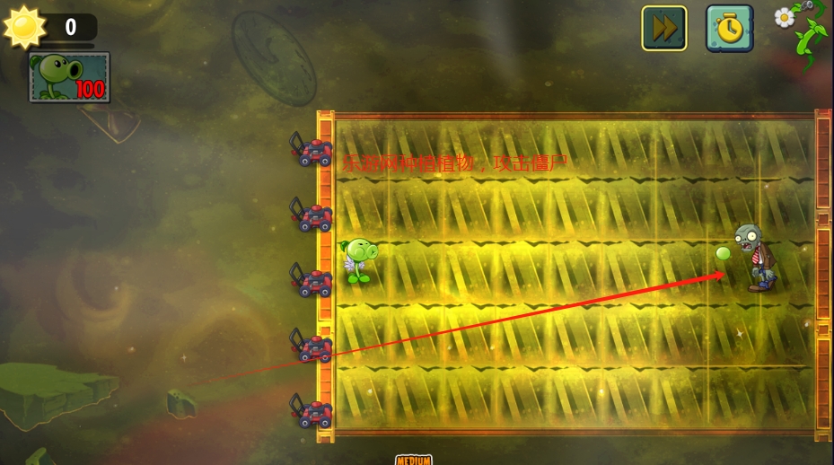 5、和原版植物大战僵尸游戏一样,这里种植下你所要布置的植物塔防,在僵尸必经之路上,用以抵御它们的进攻。