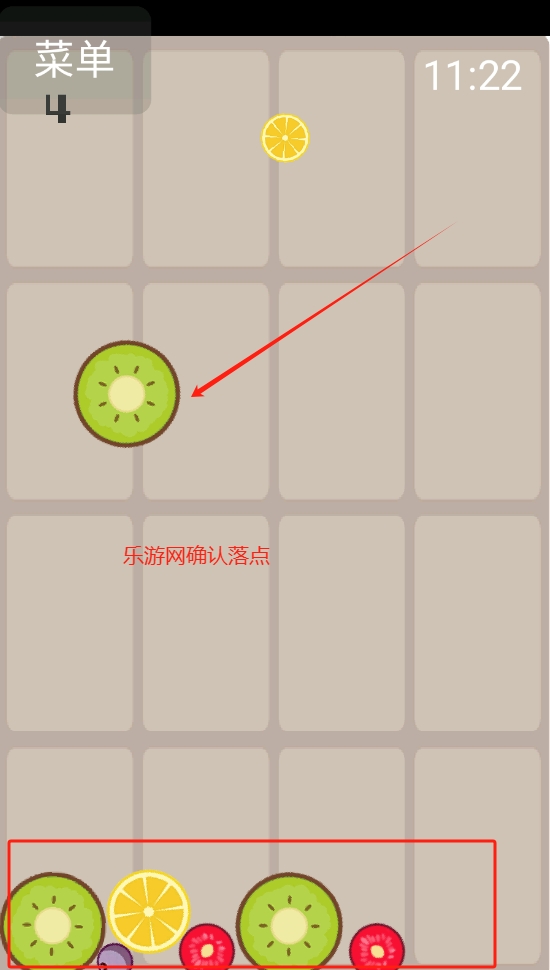 2、水果的初始落点位置默认为居中,想要改变其方向,可按照实际游戏中底部水果位置来点击完成操作。