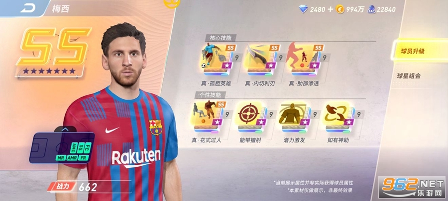 个性技能:真·花式过人、能带擅射、潜力激发、如有神助