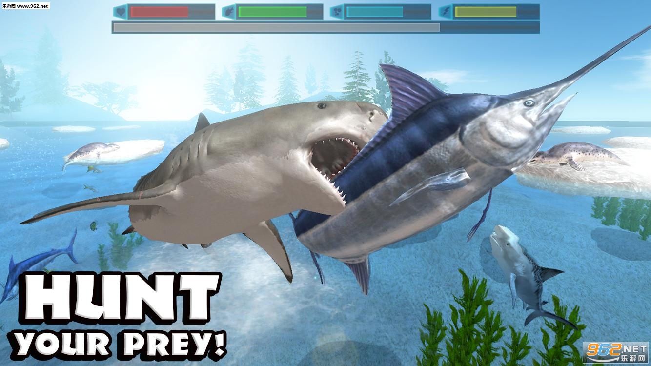 鲨鱼是海底世界中可怕的掠食者,这款《鲨鱼模拟器》就让玩家亲身感受这位海中霸主的强大。该作的画面相当的强大,3D模型水准很高。玩家在游戏中能够不断的吞食,进化,还能够挑战强力的boss,更可以生小宝宝。快来下载吧。
