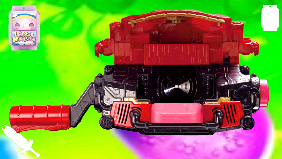 3、配色不是绿色,而是红色为主,搭配一部分的品红色,具体的变身应该就是蛤蟆吞金,把各种零食小道具往腰带的嘴巴里面塞,然后触发各种能力?
