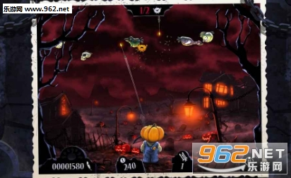 举个玩法列子,在处于暴怒状态之前,多积些箭,待暴怒时,连续不断地向空中各个方向射出去,在深暗背景的衬托下,就如烟花绚烂般美丽。游戏是以射击僵尸鸟为目的。有的僵尸鸟虽然没有抓着南瓜宝宝,你也得把他们击垮,不然超过三个,你就GAMEOVER了。一石双鸟,还可以额外加分。可惜游戏是英文的,但你只要懂得PLAY,BACK基本就能完整操作游戏。