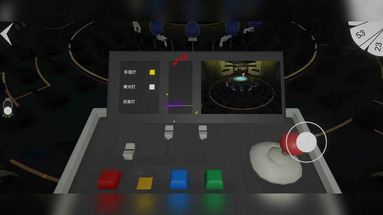 2、在游戏中,玩家会扮演演唱会的灯光师,控制每场演唱会的灯光(聚光灯、环境灯、应急灯)。
