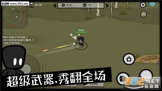 1.通过虚拟摇杆控制走位,利用手中的武器击败对手;