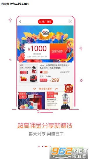 真正的高佣联盟!淘宝省钱赚钱APP,自用省钱,分享赚钱!淘宝好货一键转发朋友圈赚钱,下载APP就送288元提现红包!