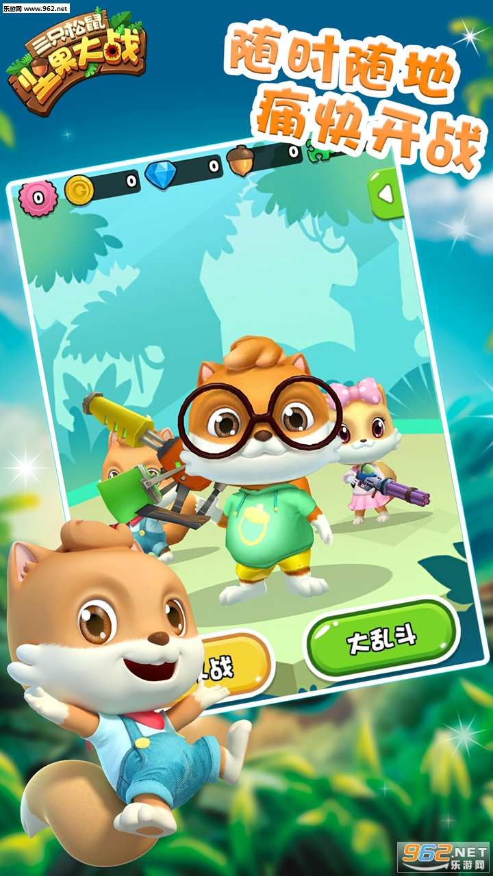 ◆ 来自松鼠星球的三只松鼠——小贱,小美,小酷扮演角色,每个角色都有独特的攻击方式及不同的战斗力