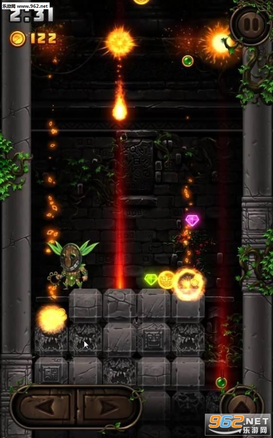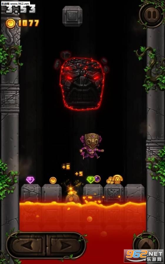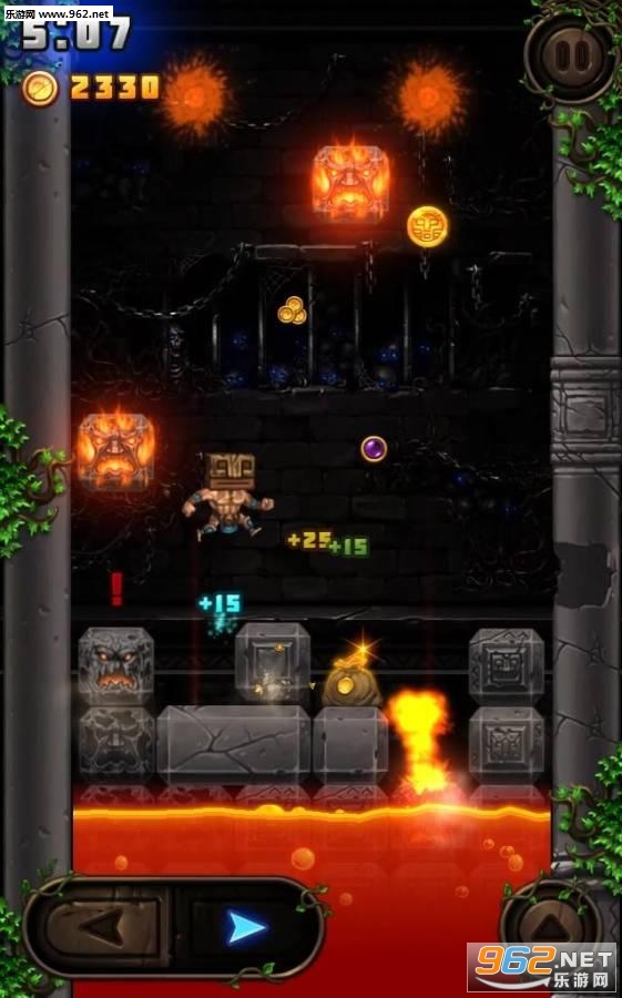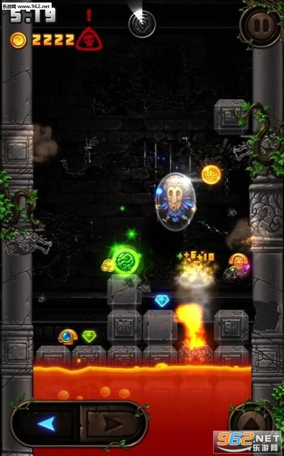 玩家可以不断落下的石头上攀爬,除了掉落的熔岩石块,空中还会落下各种不同的道具,金币袋、时间减缓道具、无敌道具等等,你的目标就是不断的攀登高峰!
