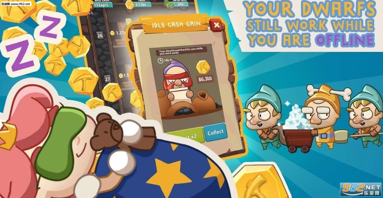 是一款清新卡通风格的挖矿游戏,7个小矿工采用了放置挂机的轻松玩法,你可以探索这三块不同的大陆,发现更多的矿源,矿源挖掘得越深,越容易获得值钱的矿石。