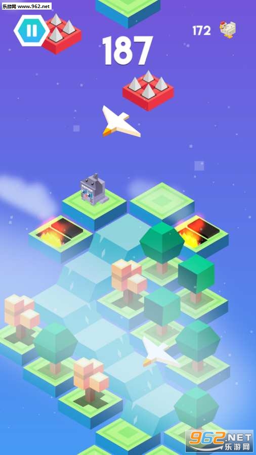 游戏中玩家要操控网红猫娜拉或者是她的小伙伴们,在方块上上左右跳跃挪移,在躲避各种关卡躲避危险,同时收集星星和宝藏。而难度在于在左右跳跃切换的时候,手脑的配合可能会出现冲突,导致小动物们命丧当场Game Over。