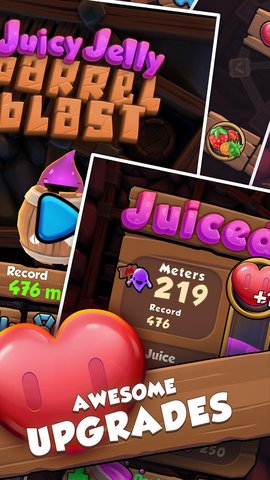 《果酱弹射》(Juicy Jelly Barrel Blast)这款游戏的玩法是看准时机然后向上弹射的游戏,难度不大,玩起来适合消磨时间,在这款充满动作的无尽弹射酷跑游戏中,这个充满了糖浆吮吸怪物,障碍物和无尽的新鲜水果山的果汁地牢中,一跃而起努力弹射到更高的高度吧。