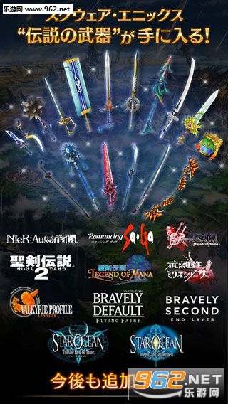 这款手游最大的亮点在于集结SQUARE ENIX旗下名作游戏的武器在此游戏中登场,目前仅仅公布的只是第一弹,就有以下作品的10把武器登场。