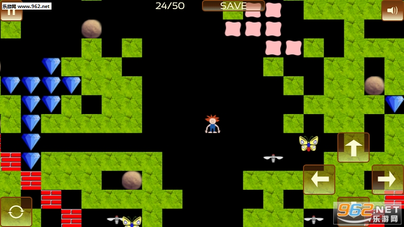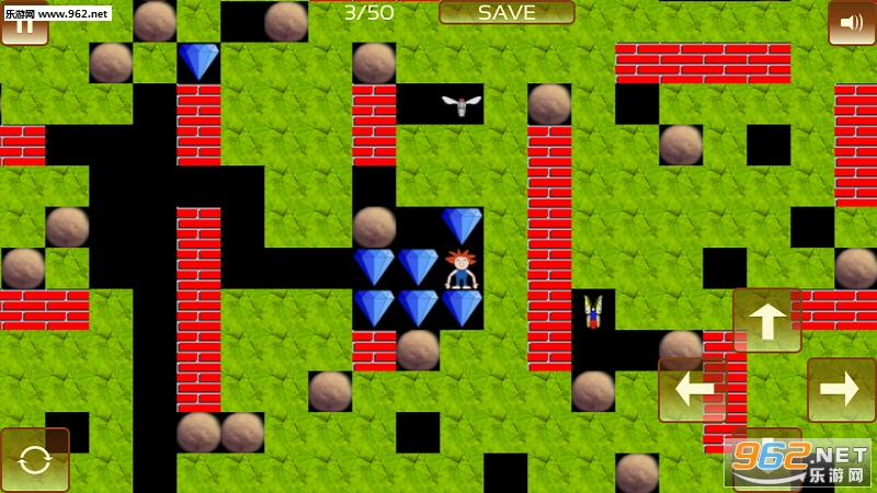 游戏中藏着许许多多钻石,将钻石都收集起来才能离开进入下一关,为宝石收集而努力奋斗吧。简单好玩的游戏玩法,可爱有趣的游戏设定,在充满危险的蝴蝶、蜻蜓还有岩石障碍的世界里。
