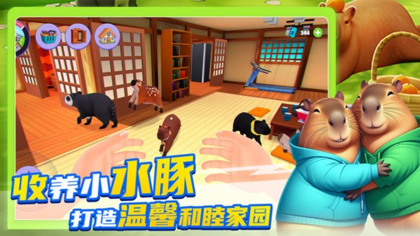 在动态的真实环境中与水豚互动。给它们喂食.洗澡和玩耍,它们会以栩栩如生的方式回应您的触摸和关注。