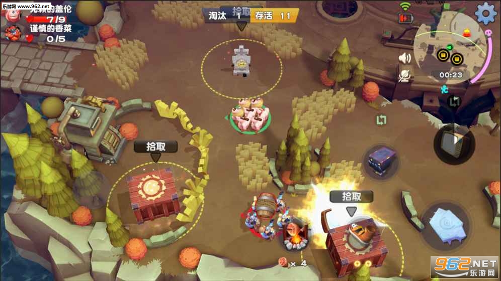 2、在地图上寻找你的族人,收集各种道具来对付你的对手们,用东西狠狠的砸他们吧;