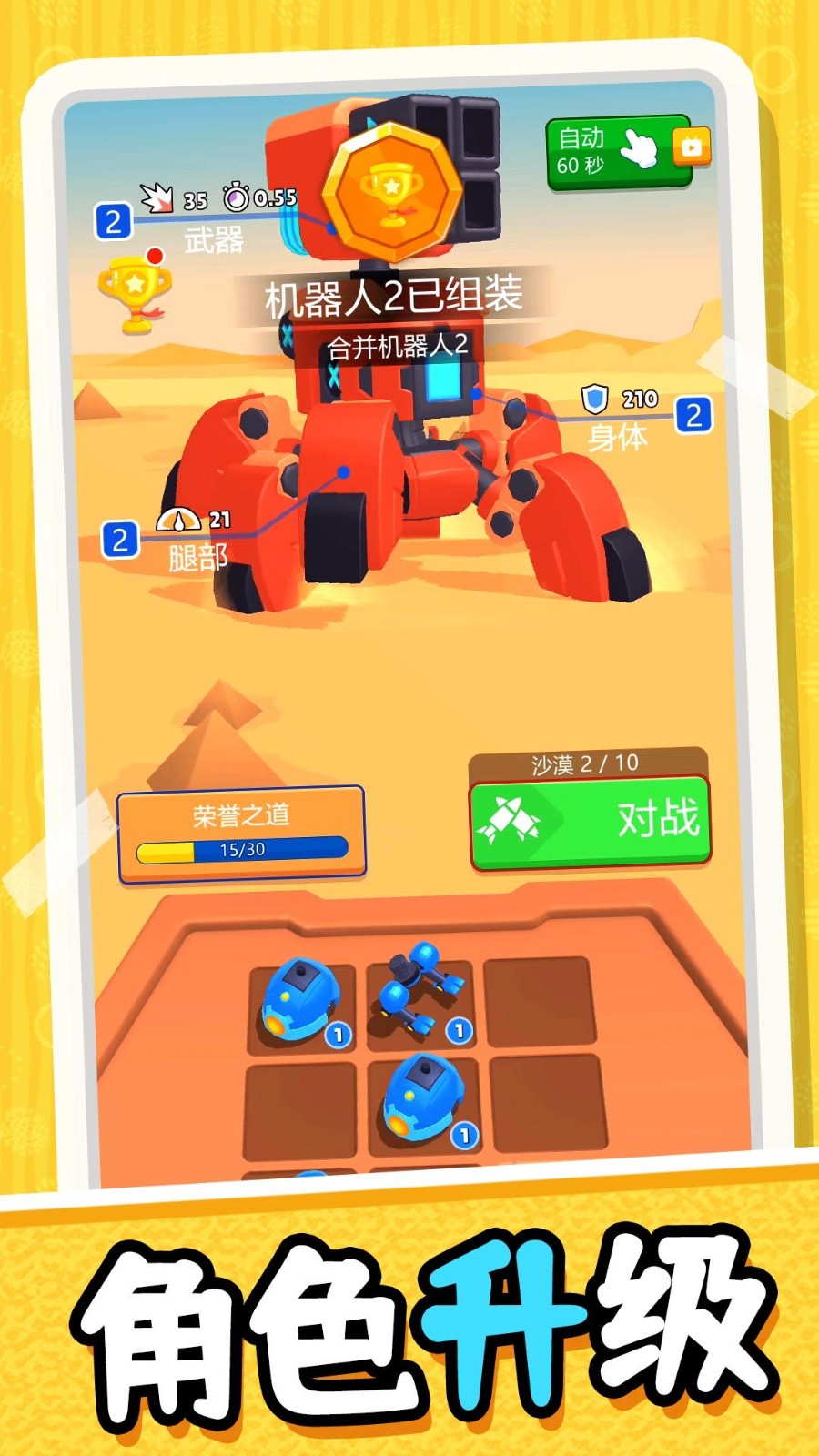 1、对机器人进行升级,优化你的战斗方式,从容的去厮杀很有难度的。