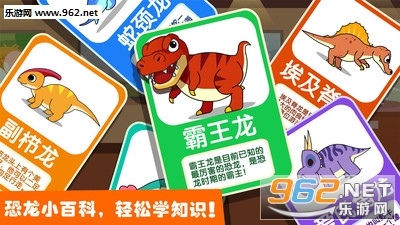画风可爱,玩法趣味,通过情景模拟+语音引导的方式,搭配生动活泼的互动游戏,激发宝宝的学习兴趣,而且还可以了解许多关于恐龙的知识!