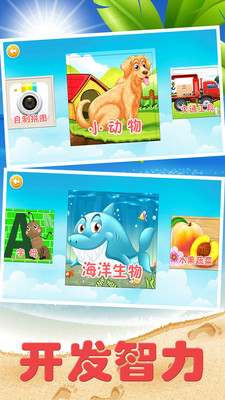 这款益智拼图游戏,可以帮助中宝宝活跃思维,开拓视野。从小培养小朋友的综合协调能力,锻炼敏捷的思维,开发智力。