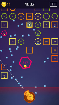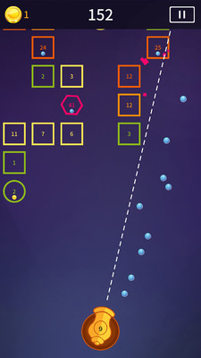 《指尖炮弹安卓版》这是一款简约风格的休闲街机打砖块手游。游戏玩法简单易懂,玩家只需要左右滑动屏幕,控制炮台瞄准和发射弹球,击碎不断下降的砖块,即可获得分数。还有道具可以增肌小球的数量,让你可以获得更高的分数。感兴趣的玩家可以下载体验!