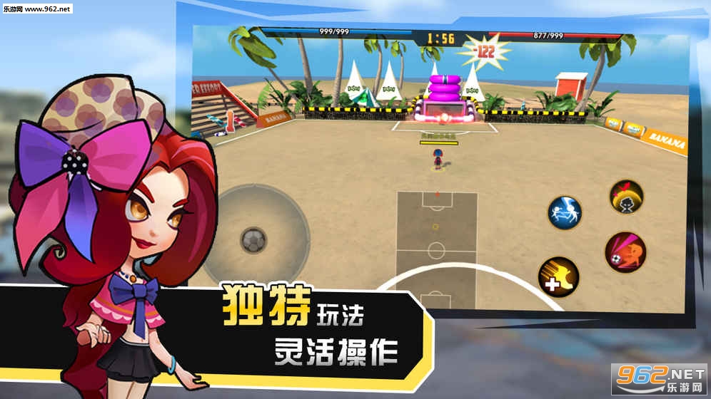 游戏采用双轮盘的操作方式,操作性强、给予玩家极大的深度挖掘空间。并且游戏中采用真实的物理碰撞系统,角色、球、甚至是技能都会被反弹、击退等等,许许多多意想不到的操作等着你来发现哦!