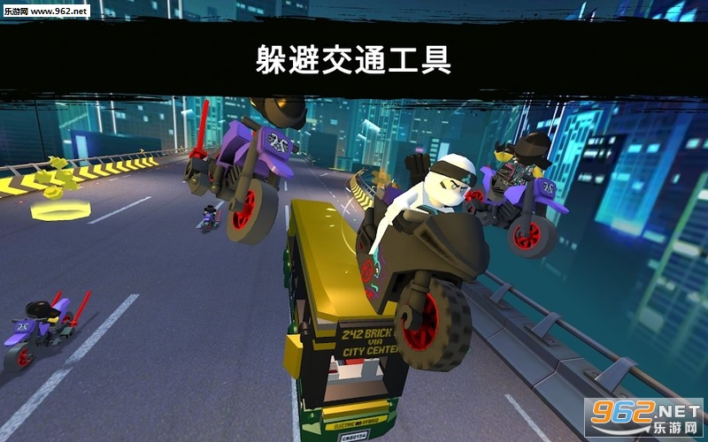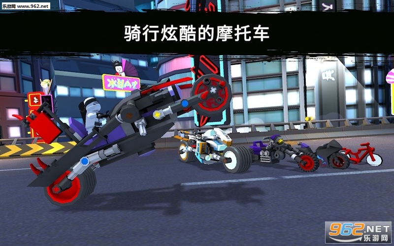 《乐高忍者骑手手机游戏》(Ride Ninja)是一款以忍者为题材的3D摩托车竞速手游,游戏中玩家可以驾驶各种不同的摩托车在街道上疾驰,躲避众多来往的车辆,当然这里不只有你一个骑手,骑手之间是可以相互攻击的。