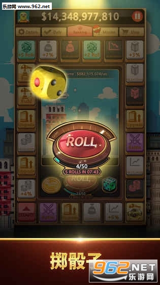 一款非常有趣的休闲手机游戏,玩法类似与大富翁,玩家可以通过掷骰子的方式,获得各种资源,建设自己的地盘。同时还可以出租,建筑数量越多,建筑的水平越高,您可以获得的租金就越多!