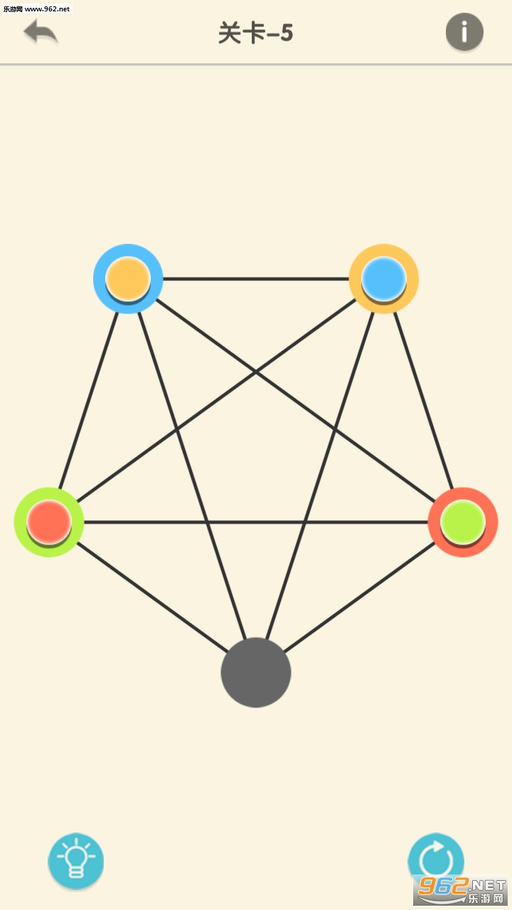 点击圆盘上的颜色小球移动位置,把颜色小球移动到对应颜色的圆盘上通关。