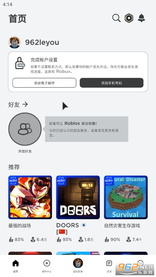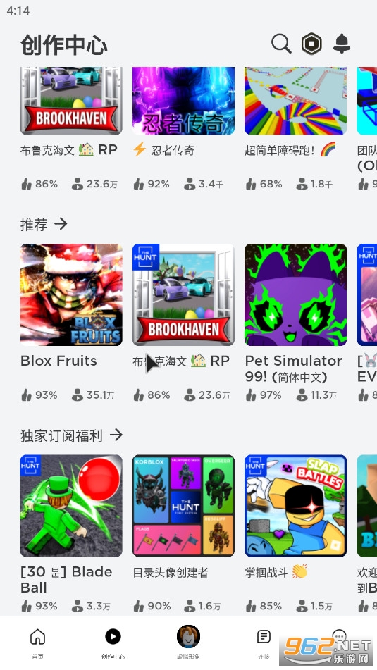 大型多人线上体验与好友和众多虚拟探险家一起在不同的社交游戏里交流。电脑、行动装置、电玩主机与虚拟实境装置都支援Roblox。我们有超过七十万名创作者共同打造全世界最大的使用者创作游戏社群,就等您来体验他们创作的游戏。