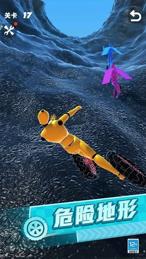 3、角色操控技巧:通过触摸屏幕控制木偶人的加速、减速、跳跃和转向动作。细腻的操控反馈让玩家能够精准地做出各种高难度动作组合,享受技巧成长带来的成就感!