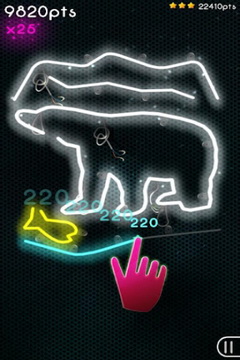《霓虹世界Neon Mania》是一款简单有趣的炫光美术游戏,用你的手指快速准确的滑动,来让那些原本暗淡无光的线条,随着你的手指的滑动,再次变得色彩明亮起来,就犹如那些色彩缤纷的霓虹灯一般!