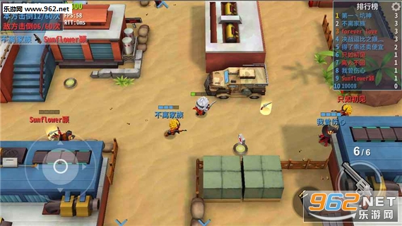 1.通过虚拟摇杆控制走位,利用手中的枪支击败对手;