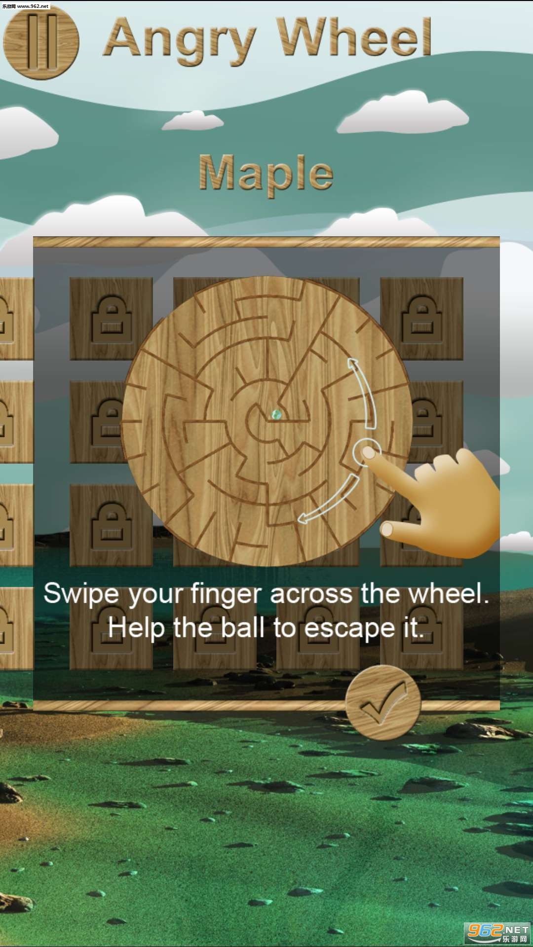 《愤怒的轮子》这是一个被困在迷宫中的圆球,圆盘上拥有非常多错综复杂的路线,它无法知道那一条才是出去出路,云盘被钉在木板上,导致它无法移动,只有你通过转动圆盘才能帮它逃脱出去,请记住有耐心才能找到唯一的出路!