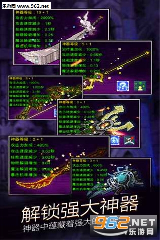 每个英雄都有一把传说中的神器,用资源可以升级这些强大的神器。