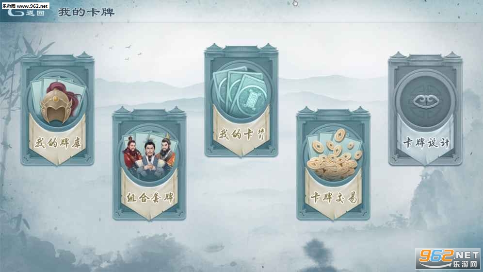 游戏中的卡牌分类共有兵、阵、器、将、计5种,兵与将类似炉石中的随从牌,阵和计相当于法术牌、器等于装备。基本牌的属性与普通的卡牌游戏无异,牌面边上标注着攻击力、生命值和费用。