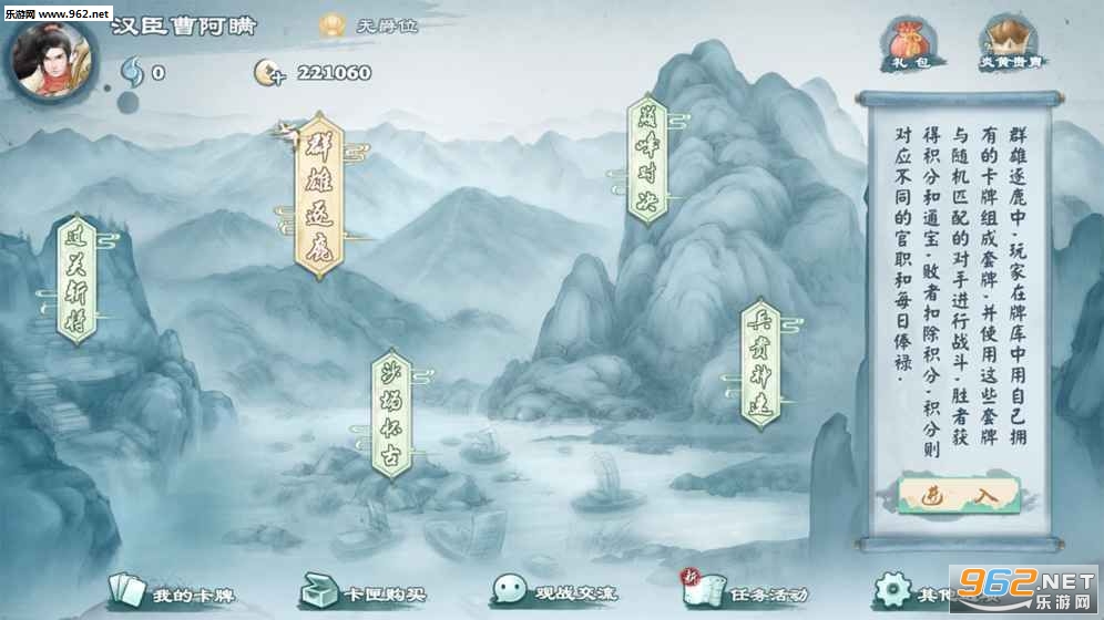 这个游戏无论是画质还是中国风都让我很满意,但是建议多出几张新手卡。尤其是高费的。我刚开始就碰到充钱的,投石车冲车还有刘禅之类的卡打出来,而我最强的只有青州兵。。。