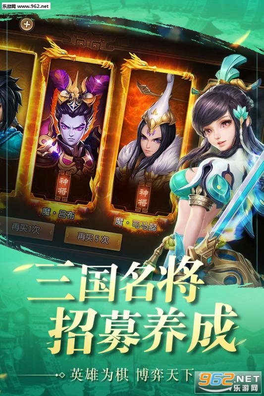 打破回合制游戏禁锢,战斗自由走位、自创阵法,全新引入骑战系统,以谋略定胜负!三国名将绿色收集,自由搭配打造最强阵容;真实再现百城十三州大地图,回合制也能跨服国战;浪漫结婚、兄弟知己、封土建邦,让你亲身领略高仿真乱世社交。