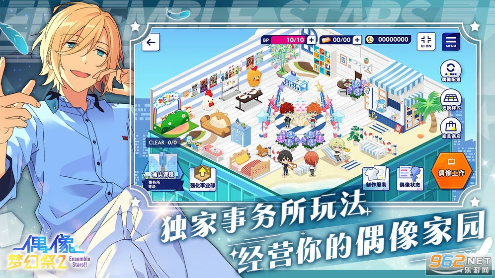 玩家可以在偶像事务所里布置各种各样的家具,创造专属的偶像家园,不仅有丰富的主题套装供玩家装饰,还能解锁超多超可爱的偶像特殊家具配套行为!海滩刨冰摊吃美味刨冰,温馨卧室带着毛茸茸眼罩打呼...精致的动作细节仿佛置身偶像生活之中,让人欲罢不能!