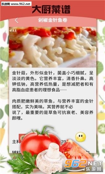 暴走食神app的详细介绍每一道家常菜的主料、调料、制作过程、注意事项和各自特点,让家庭主妇轻松地学会怎么做美食,轻松成为大厨。