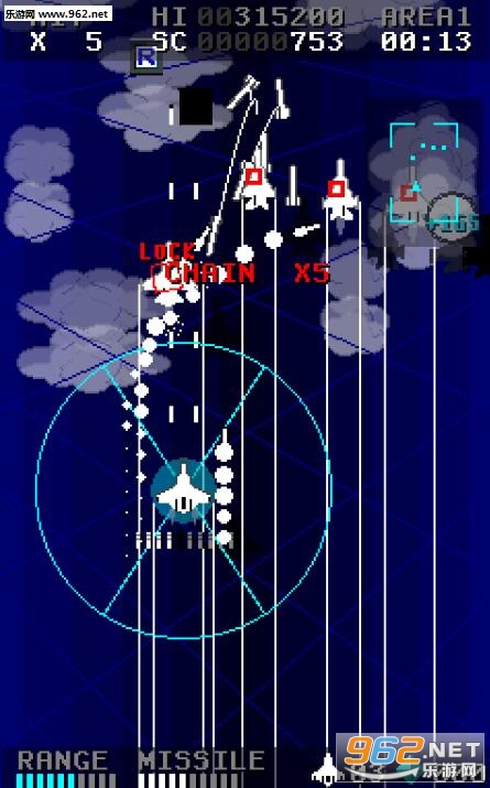 这是一个垂直滚动射击游戏。 你可以操作实现锁定导弹的战斗机导弹舞者。 光标锁定显示在飞机上方。 在推动镜头时,光标放大。 您可以通过将光标与敌人进行匹配来锁定。 通过接通电源项目,光标范围和锁定数量增加。